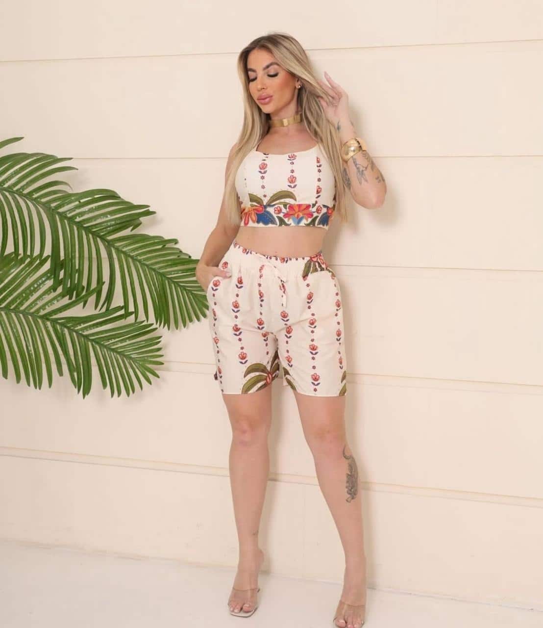 O conjuntinho é perfeito para quem ama estilo e conforto. Composto por short e cropped com bojo, o modelo garante segurança, caimento bonito e visual super moderno. Ideal para verão, praia, passeios e looks casuais.